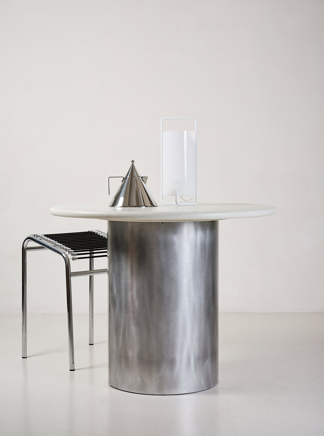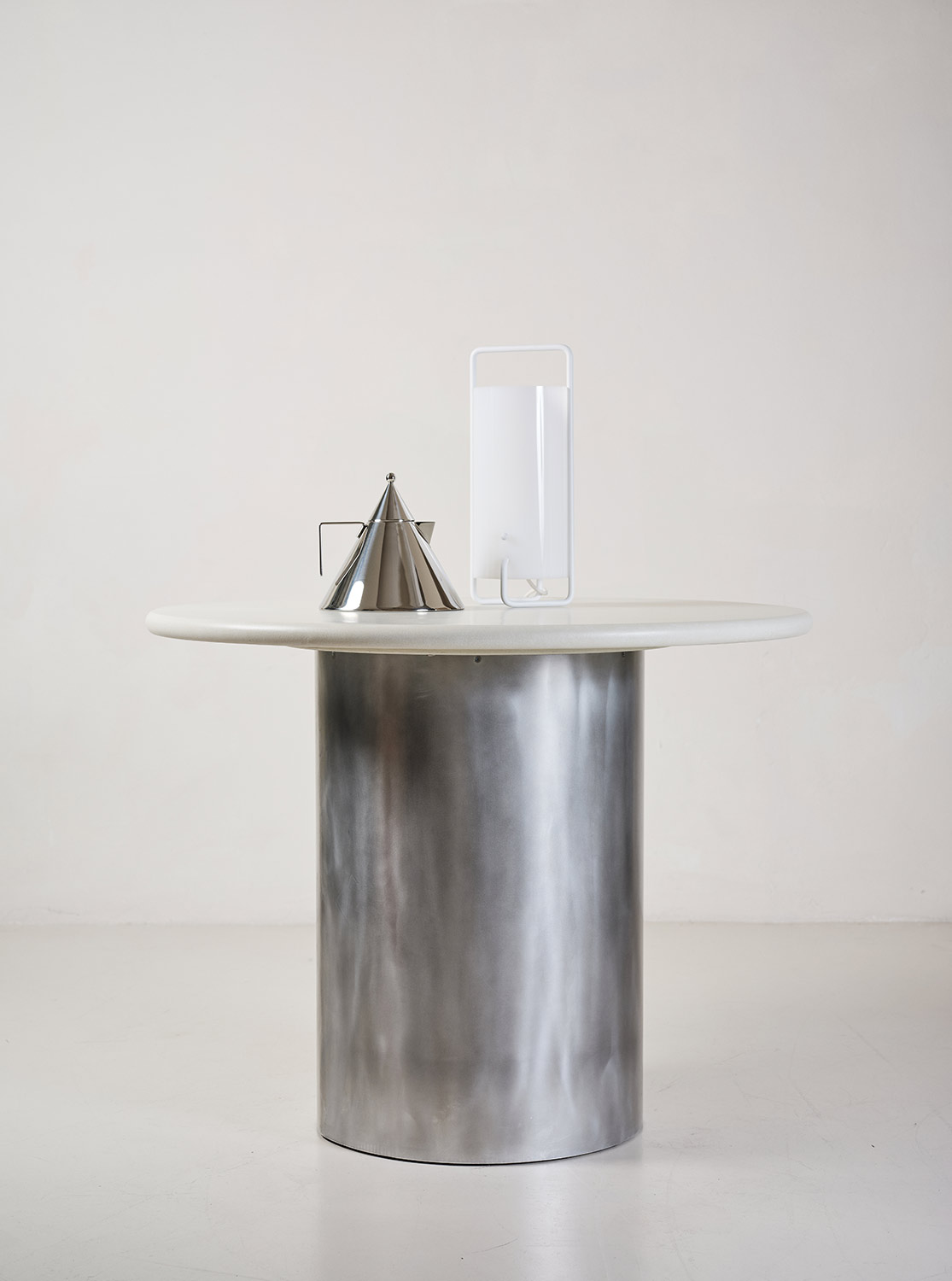Custom dining table made in Microcement and polished steel